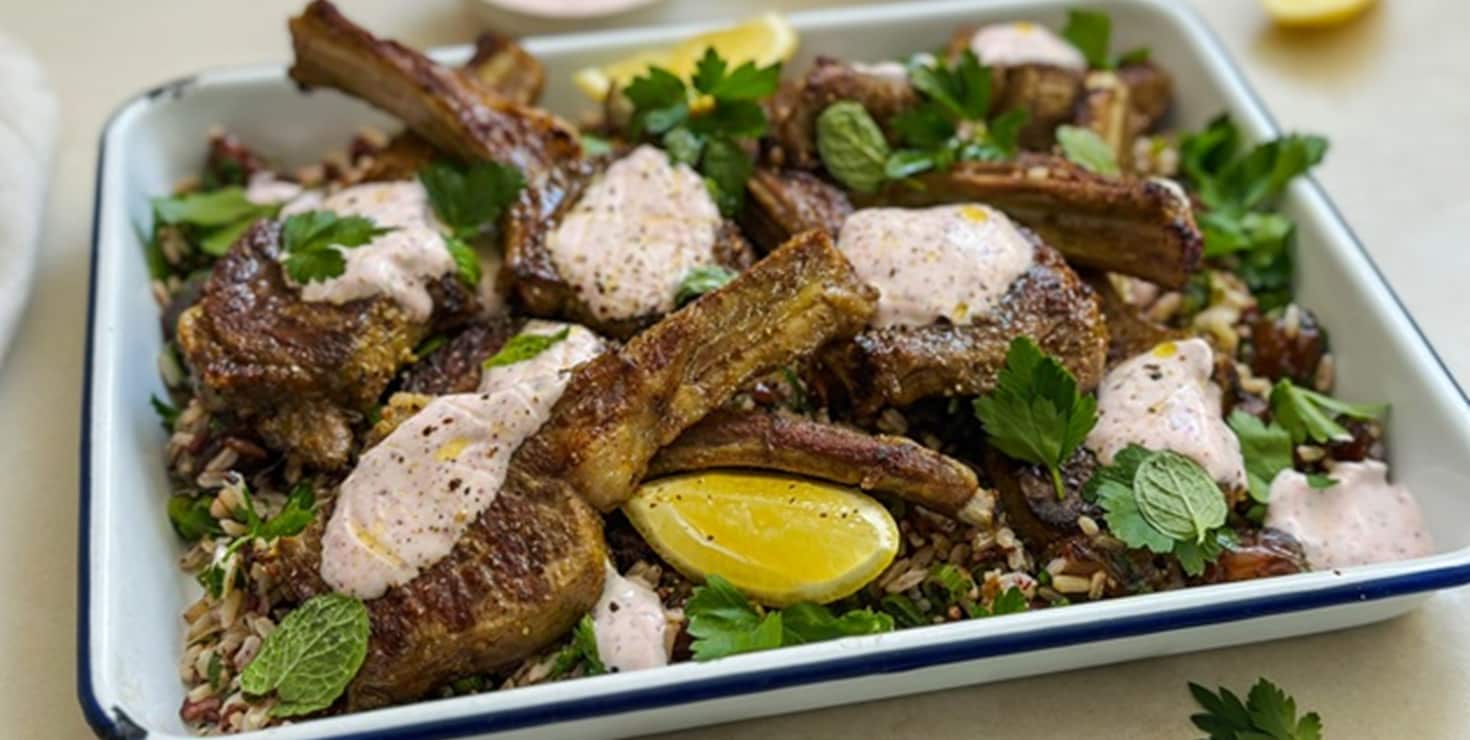 Spiced Lamb Cutlets with Sumac Yoghurt & Grain Salad