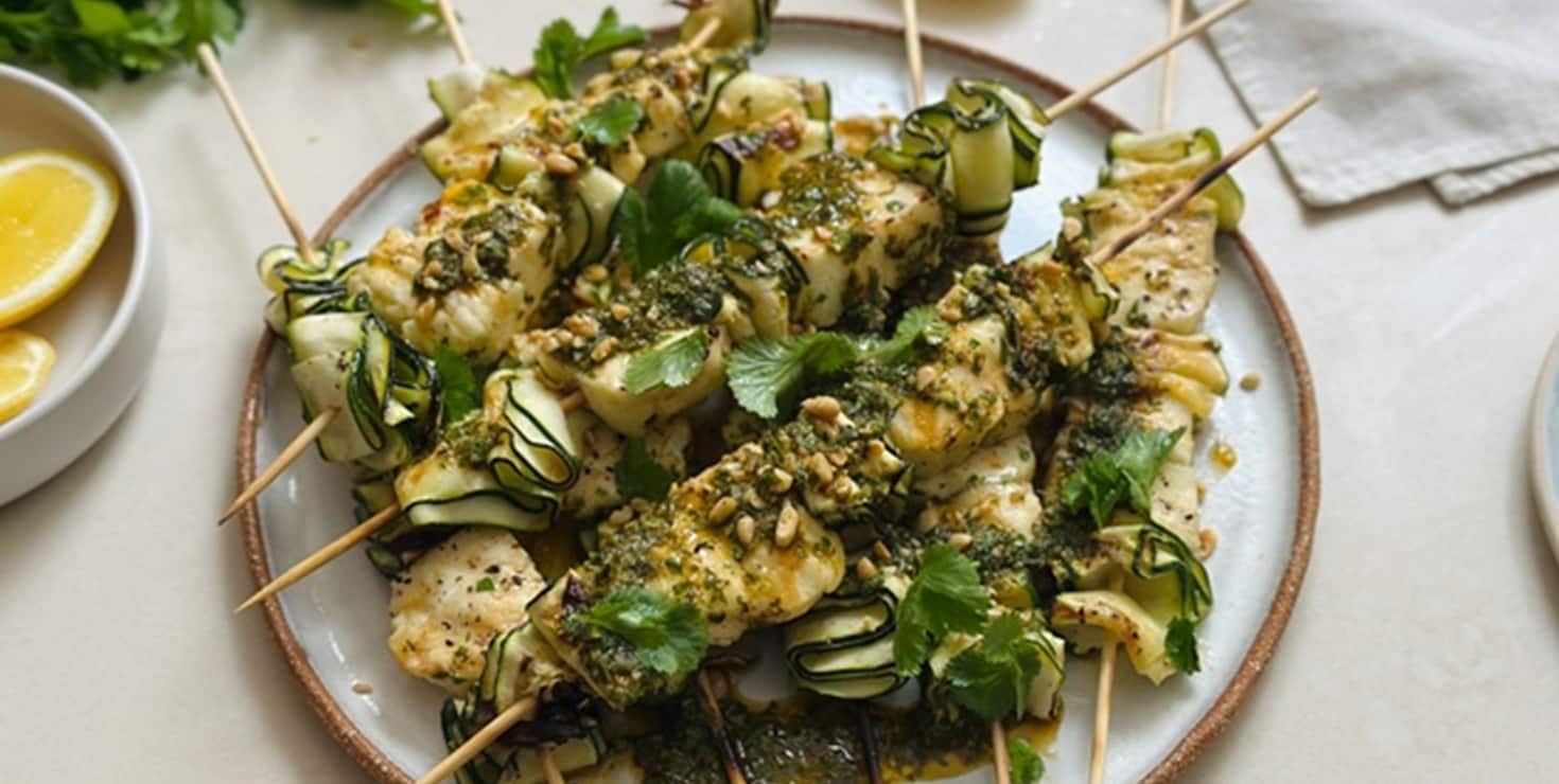 Marinated Haloumi & Zucchini Skewers with Herbie Dressing